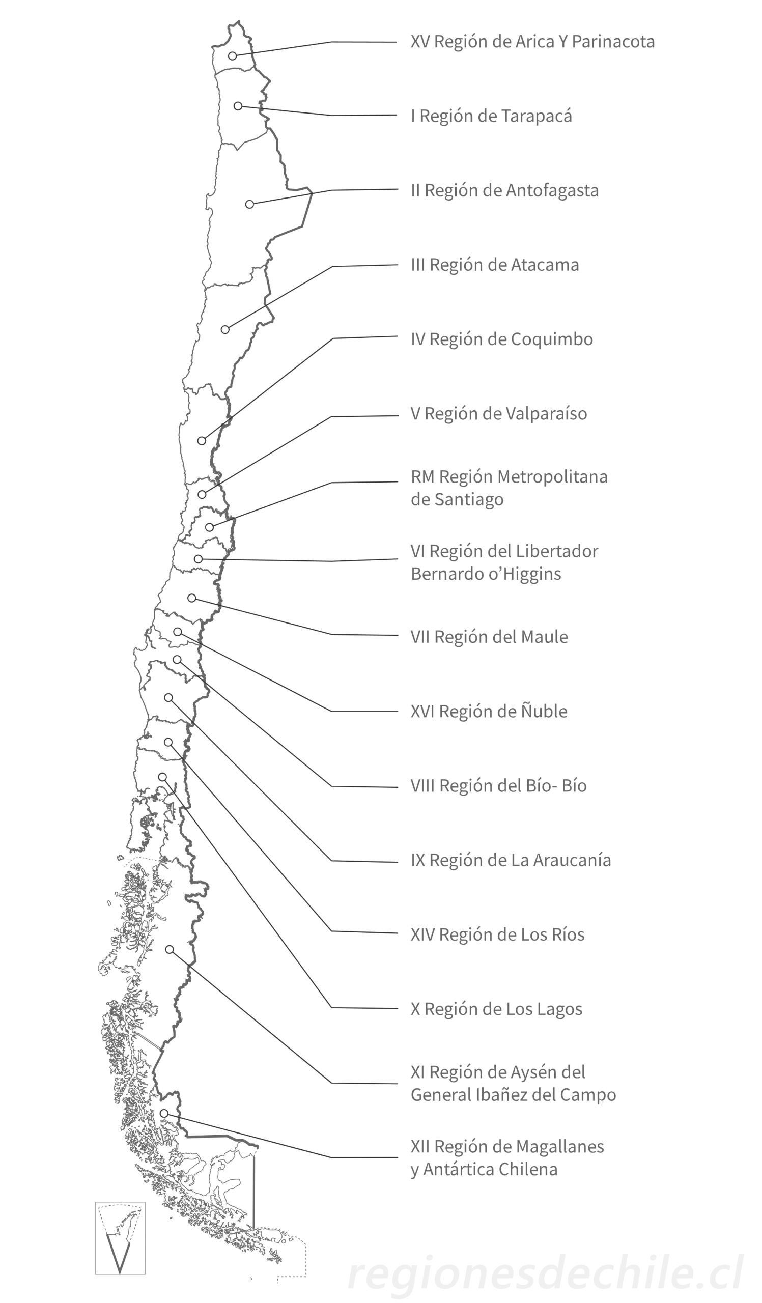 Este es el orden actual de las regiones de Chile de norte a sur. Descarga la imagen con el listado de las 16 regiones de Chile haciendo clic en ella: